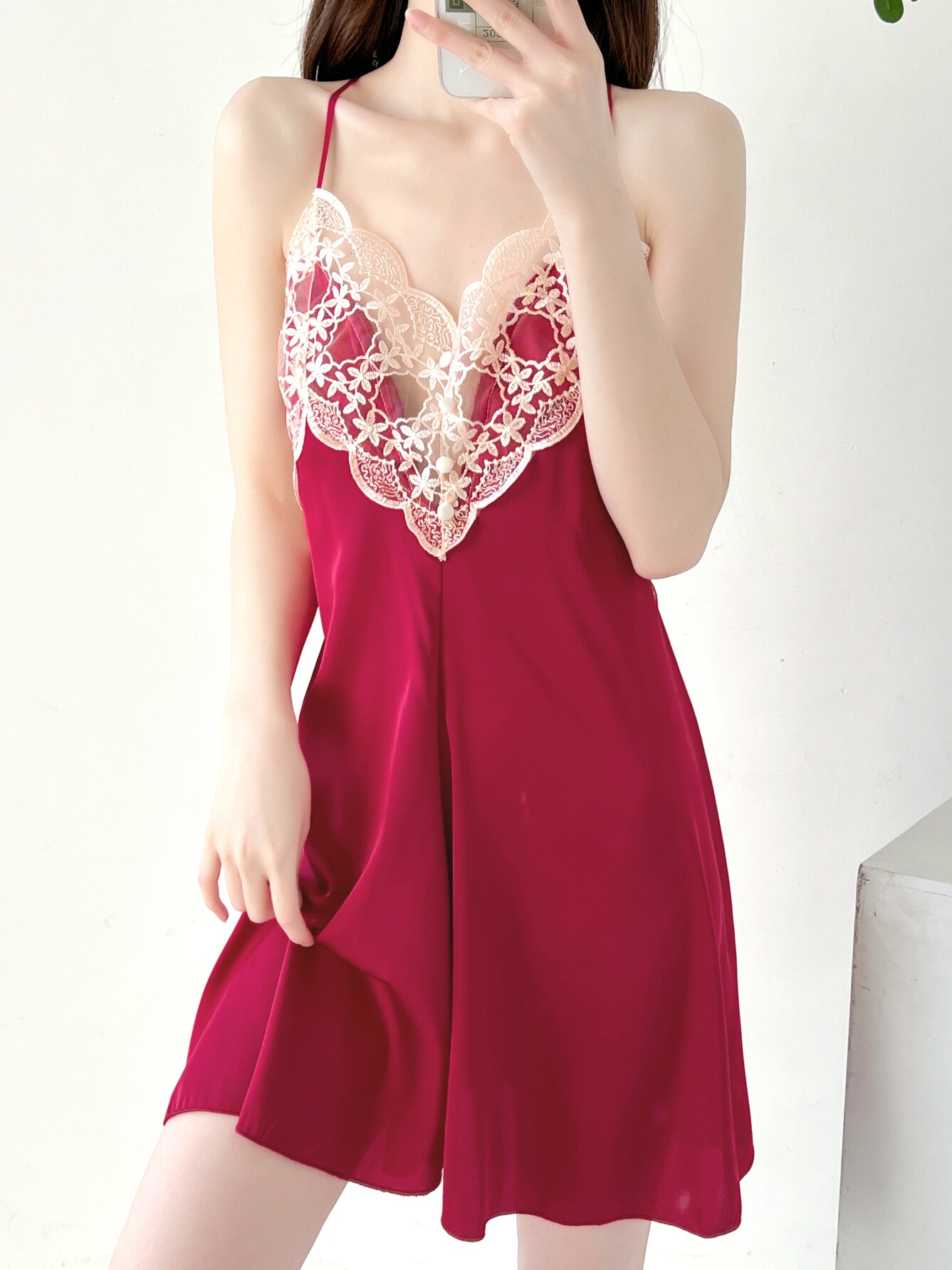White nightdress ladies sexy lace hollow hot temptation private underwear summer ice silk thin suspender pajamas