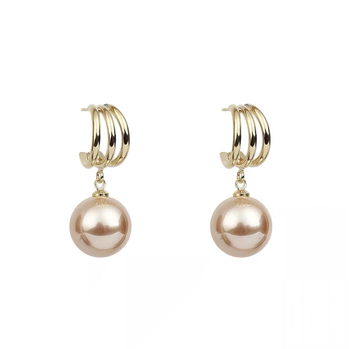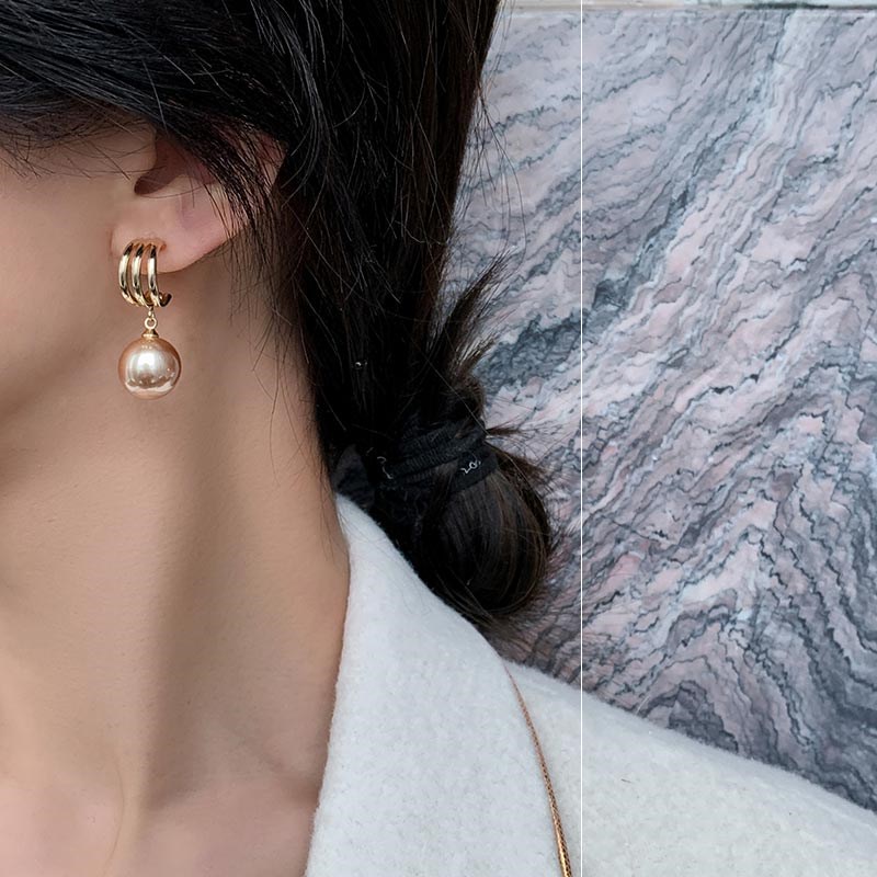Trendy fashion ~ high sense ~ earrings champagne pink pearl earrings Korean temperament net red earrings feeling retro atmosphere