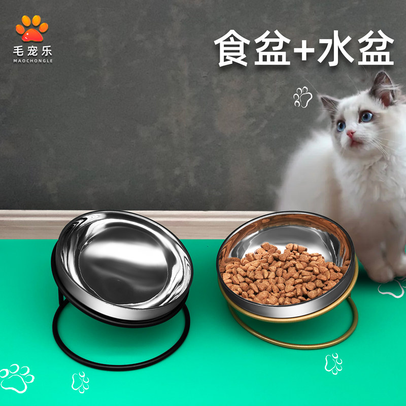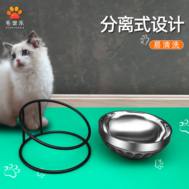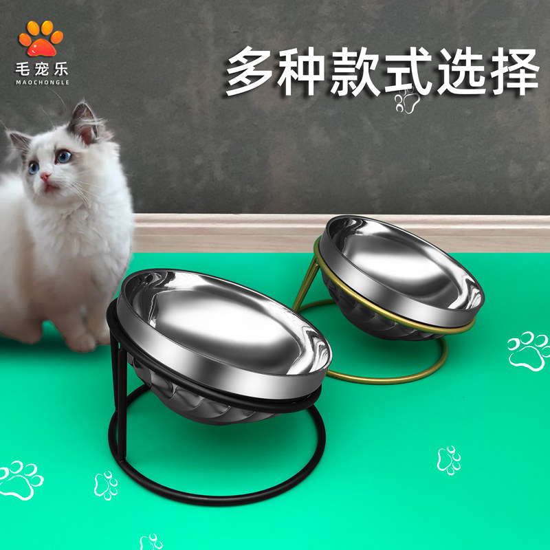 Cat bowl oblique mouth bowl stainless steel cervical vertebra protection anti-skid cat food bowl iron frame cat food bowl anti-bite dog cat protection