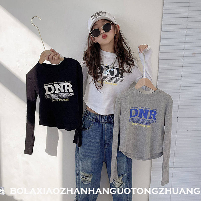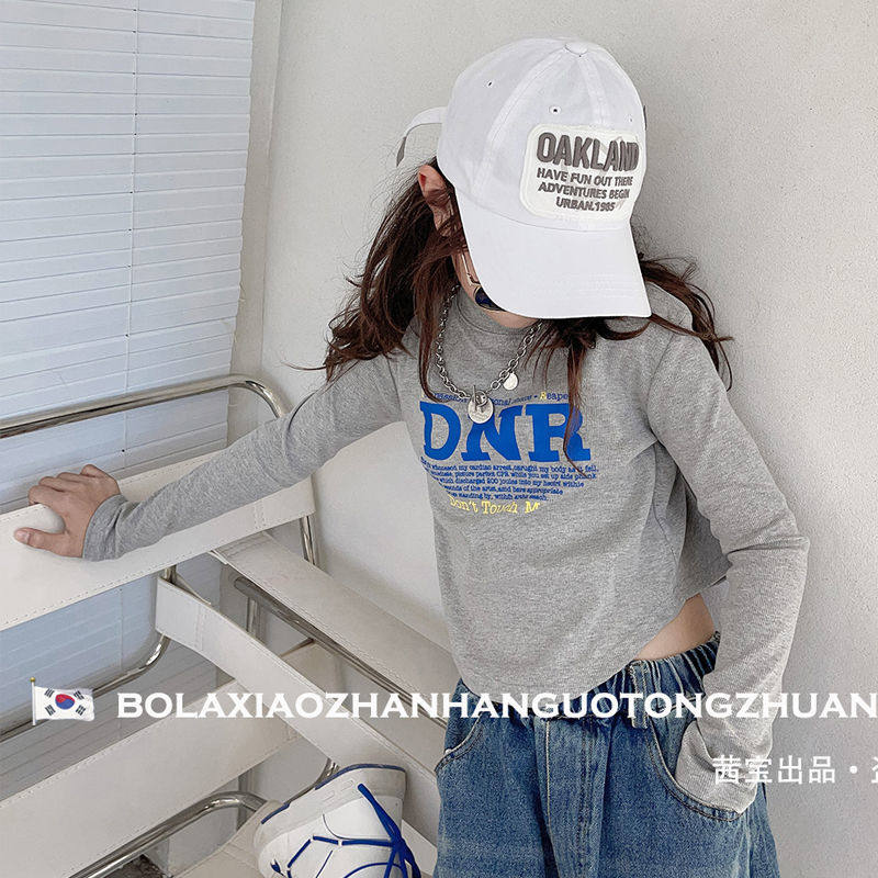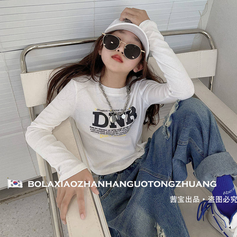 Girls slim bottoming shirt 2022 spring new children's foreign style casual tops middle and big children spring and autumn long-sleeved T-shirts
