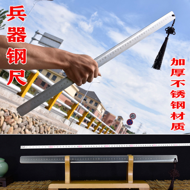 Longquan weapon ruler thickened steel ruler metal ring ruler stainless steel stick ruler car self-defense film and television props are not edged