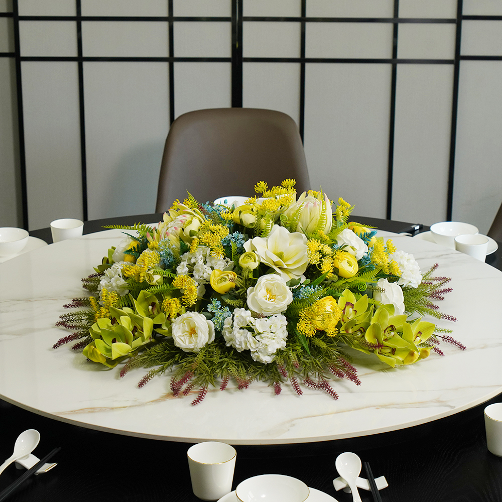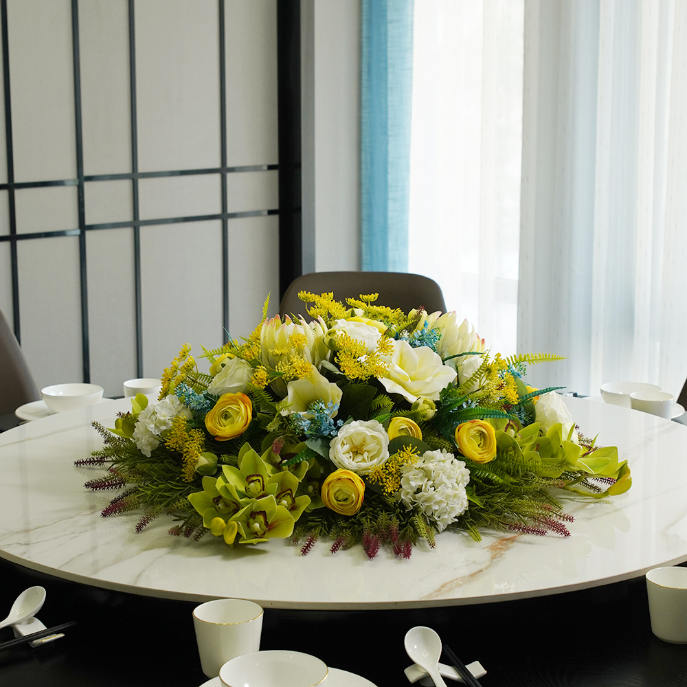 High-end dining room table flower arrangement flower hotel restaurant large round table turntable middle decoration simulation flower conference table fake flower