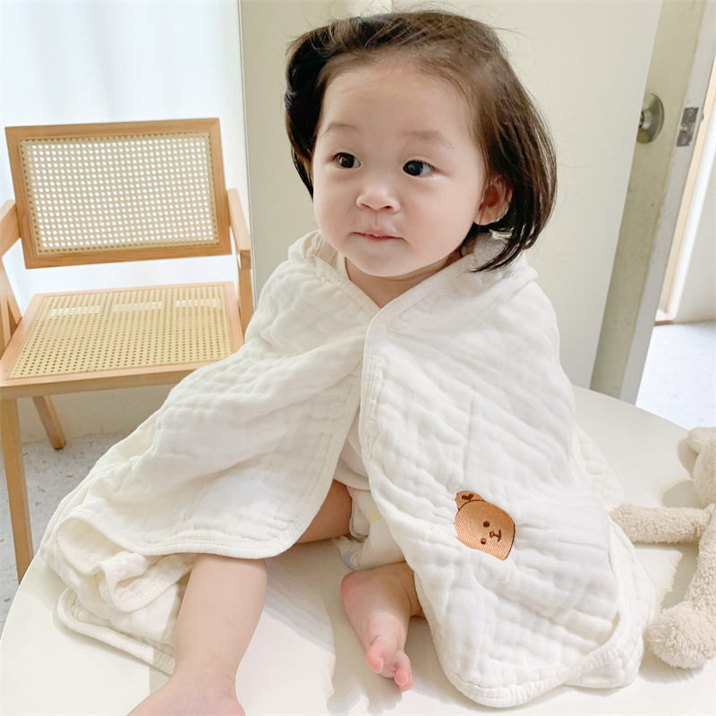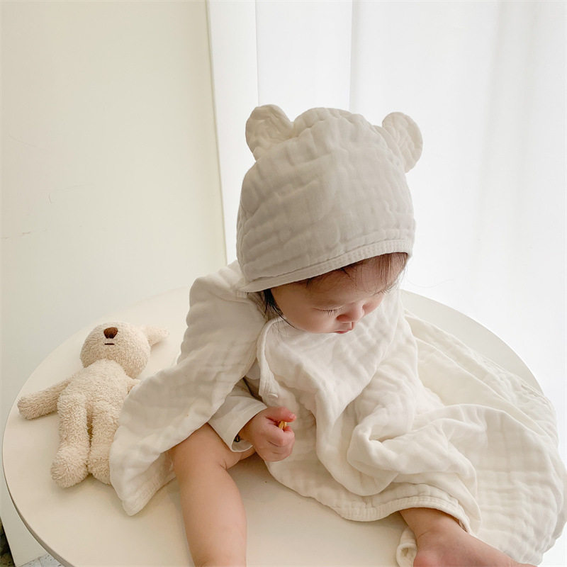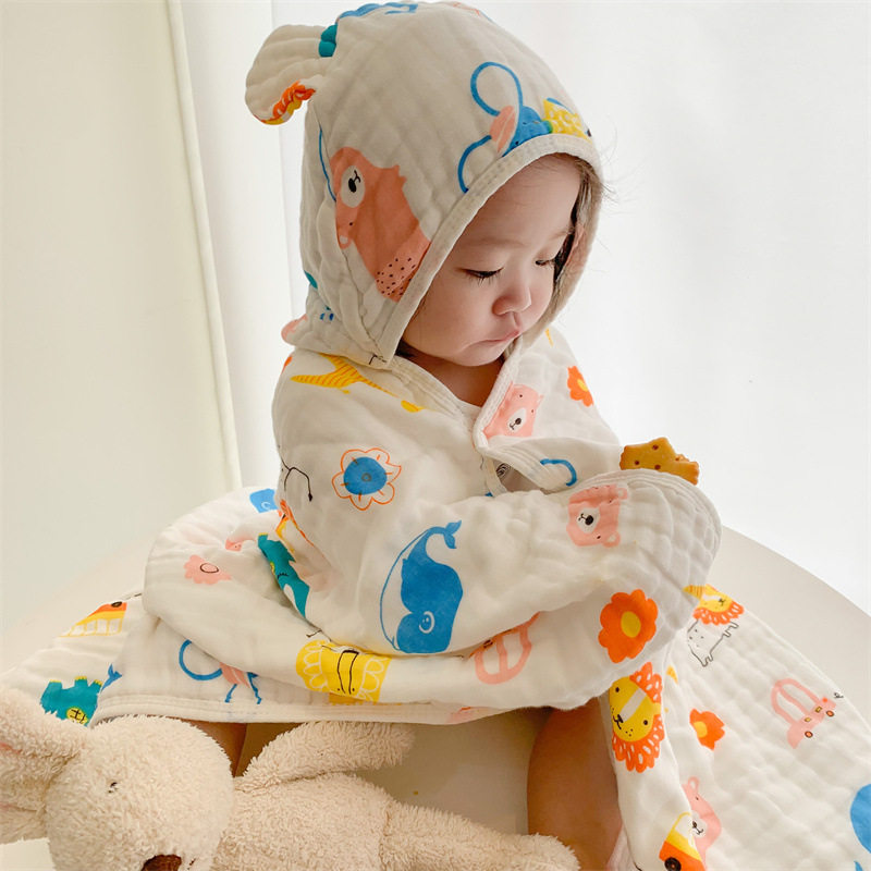 Baby 6 floor gauze with hat towel baby class A fluorescent agent All cotton bathrobe children bubble dress cloak