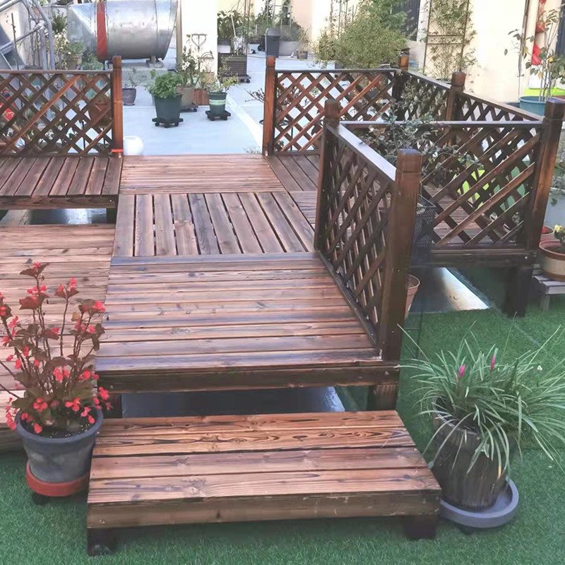Customized outdoor anti-corrosion wood floor terrace garden courtyard platform carbonized wood plank waterproof balcony outdoor steps