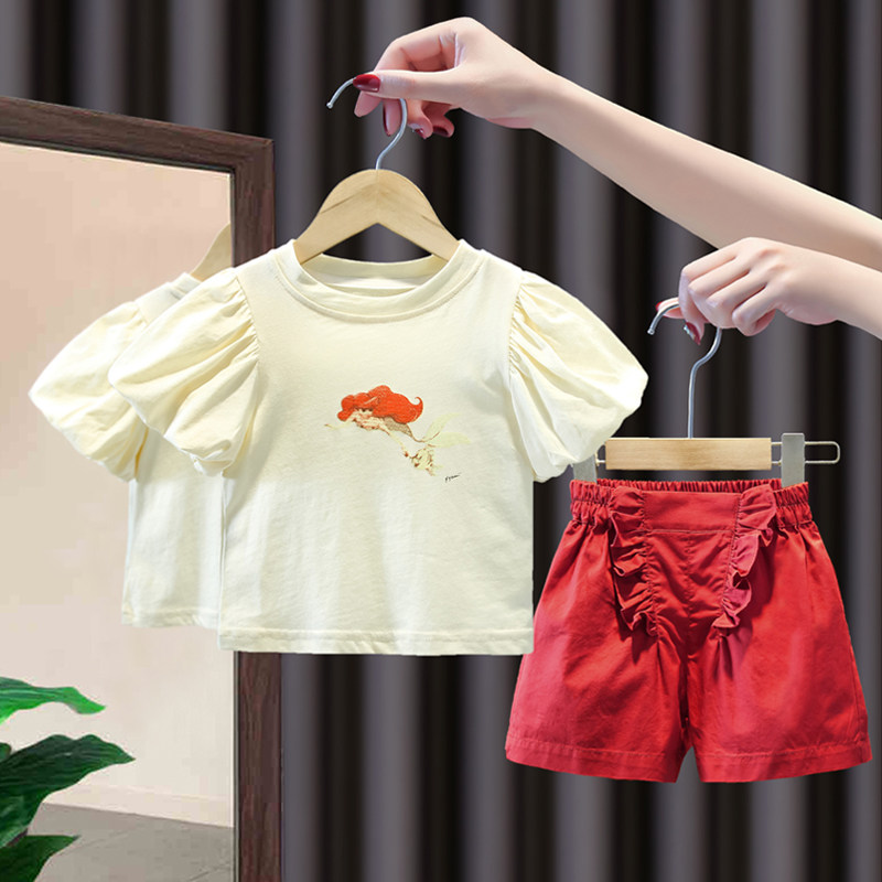 Girl Suit Summer Clothing Short Sleeves 2022 New Foreign Pie Children Shorts Women's Baby T-Shirt Summer Leisure Two Styles
