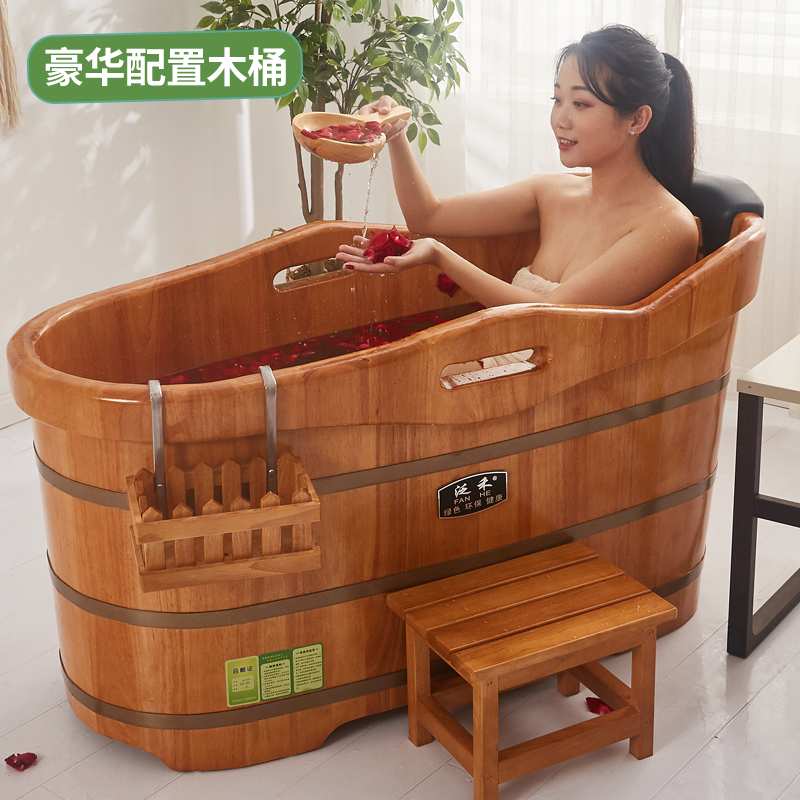 Adult wooden barrel bath barrel wooden bath barrel adult bath barrel solid wood bathtub home beauty salon full body bath tub