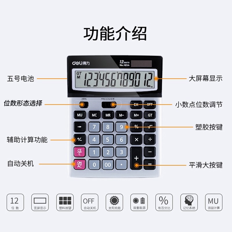 Able 1654 Financial Accounting Private Calculator Solar Dual Power Big Screen Big Key Computer 12