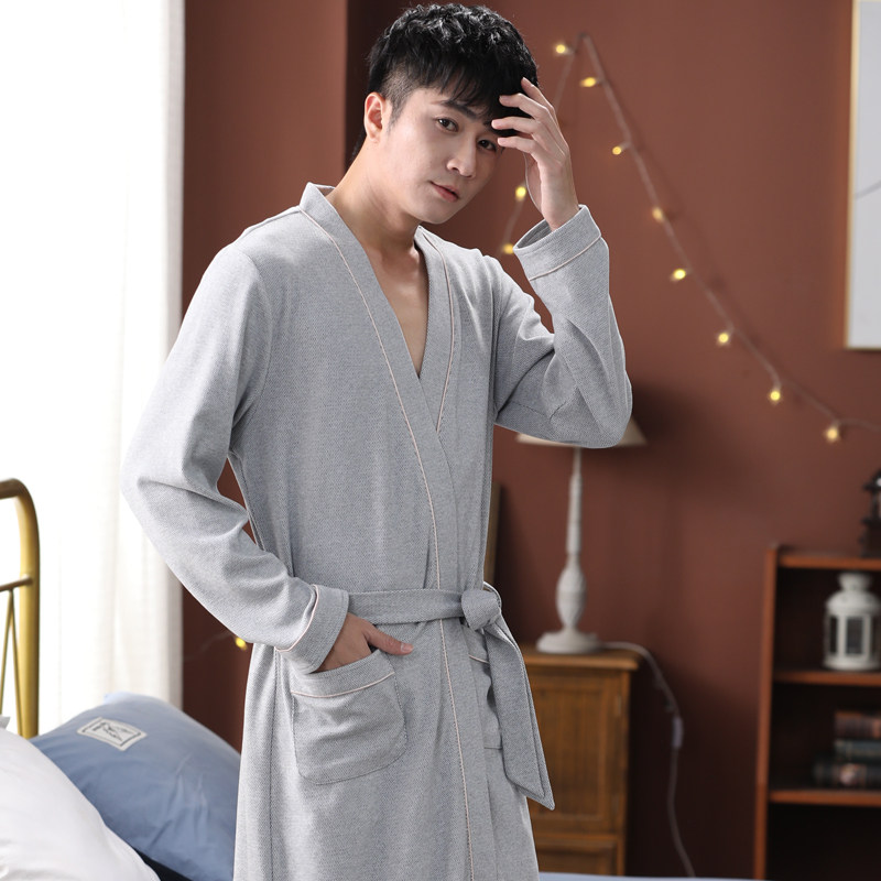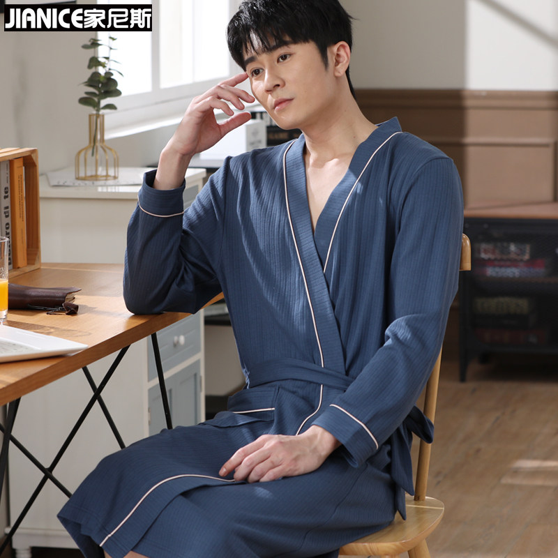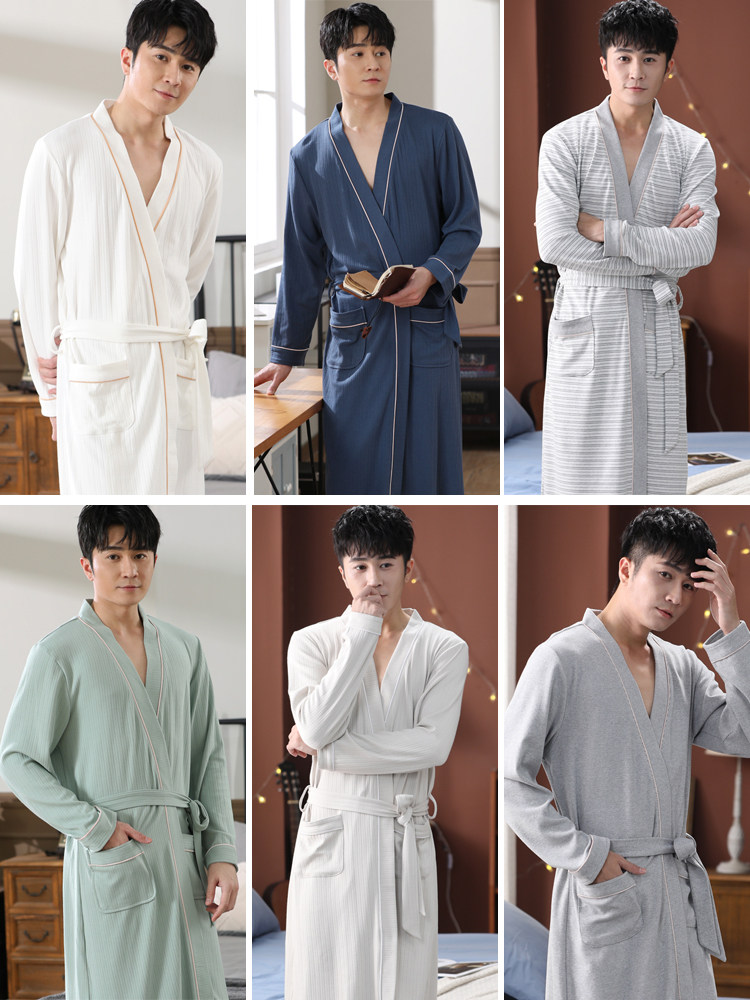 Home nice men's bathrobe four seasons pure cotton adult bathrobe spring and autumn nightgown summer five-star hotel four seasons universal