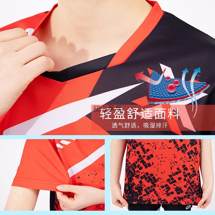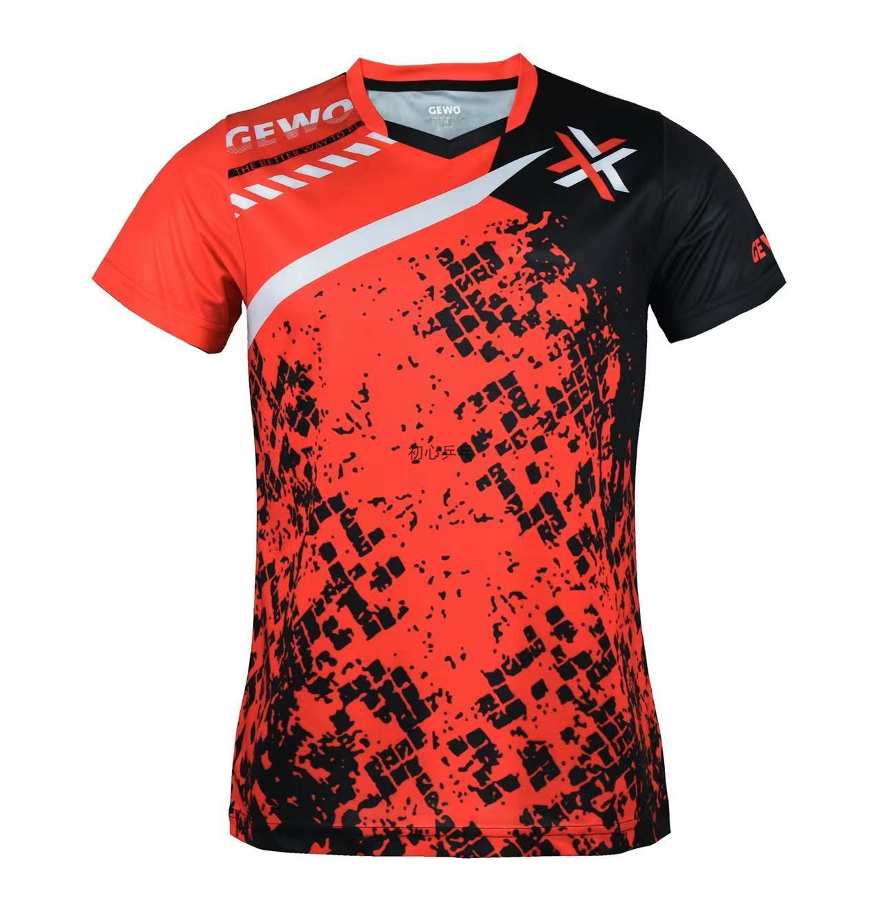New GEWO Jiewo breathable sweat-absorbing quick-drying men's and women's table tennis sportswear short-sleeved training competition shirt in full bloom