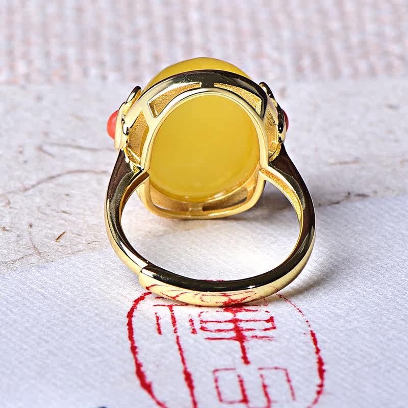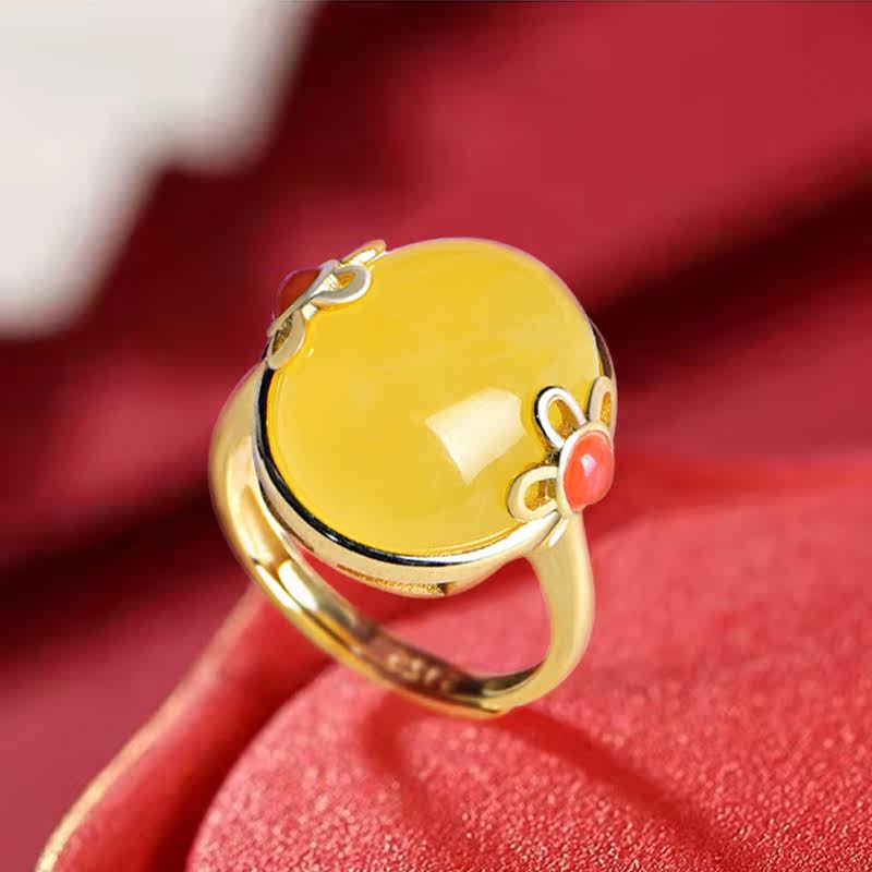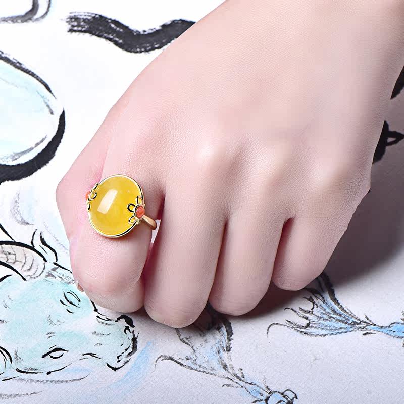 Zhengya Jewelry Natural Beeswax Plum Blossom Ring Chicken Oil Yellow Honey 925 Silver Gold-plated Female Models