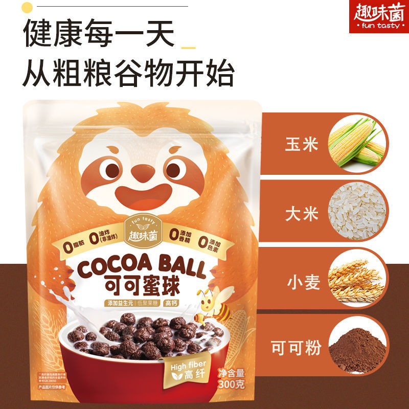 Low Fat Cocoa Honey Ball Breakfast Cereals Ring 0 Cocoa Balls No Sugar Fine Grain Crisp Zero Food Corn Flakes Oatmeal