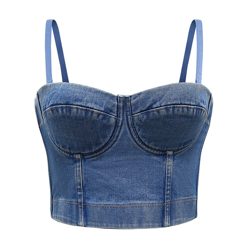 Harness with chest cushion Female underwear Summer outwear Bottom Inner Lap Denim Short blouses Beauty back bra integrated vest