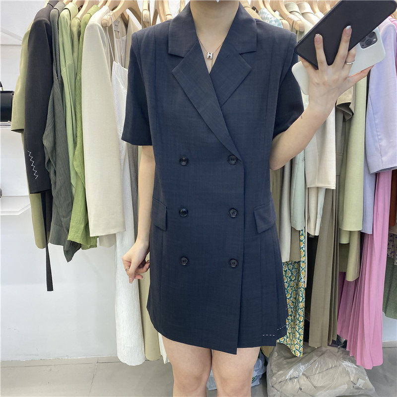 Seasonal clearance MOOTEA Korean summer fashion loose casual all-match suit collar double-breasted dress skirt
