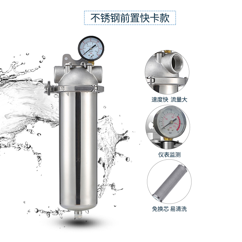 10 inch front filter 304 stainless steel backflushing household wellwater tap water pipeline whole house water purifier