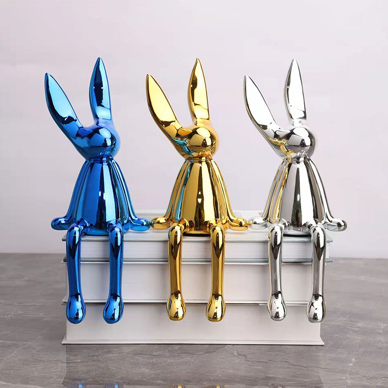 Long Ear Rabbit Creative Pendulum Resin Modern Light Lavish Nordic Wind Long Legs Electroplating Living-room TV Dining Cabinet Decorations