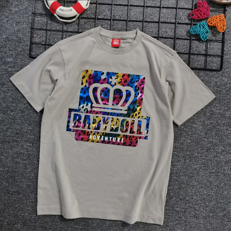 300241 foreign trade day single summer adult new crown short-sleeved trendy bronzing printed cotton short-sleeved T-shirt