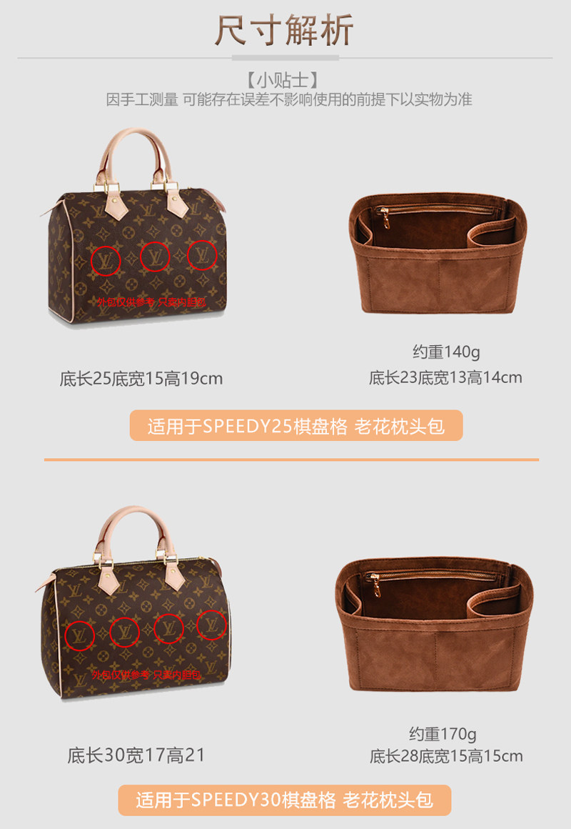 For LV Speedy25 30 liner bag inner lining bag containing finishing 20 Boston pillow bag in bag brace shape