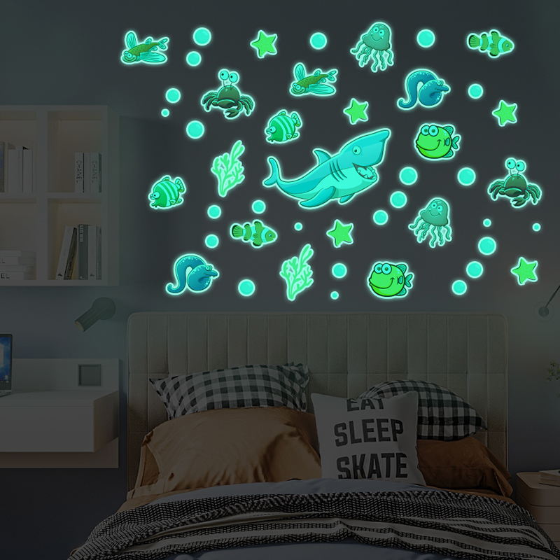 Luminous sticker paper cartoon children's room decoration stickers self-adhesive cute wall stickers background wall bedside stickers environmentally friendly fluorescent stickers
