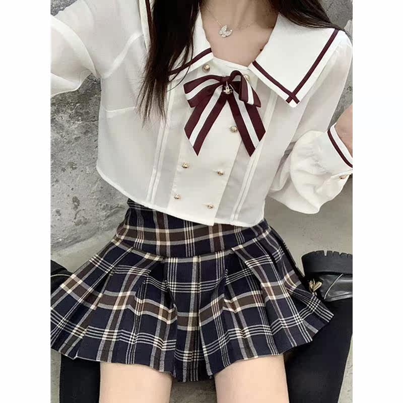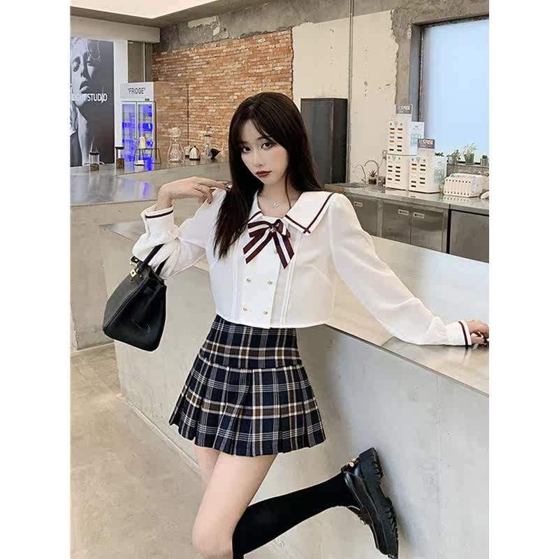 majealure college wind JK uniform suit 22 years new school uniform shirt plaid half body dress Two sets