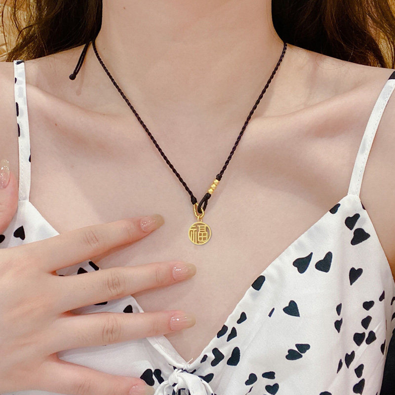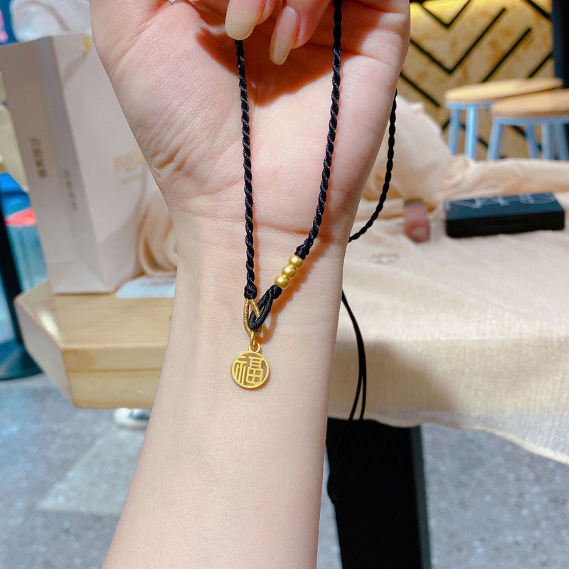 Hollowed-out Fuffle Gold Bead Woven Rope Necklace Solid Forboard Gold Bead Woven Rope Necklace