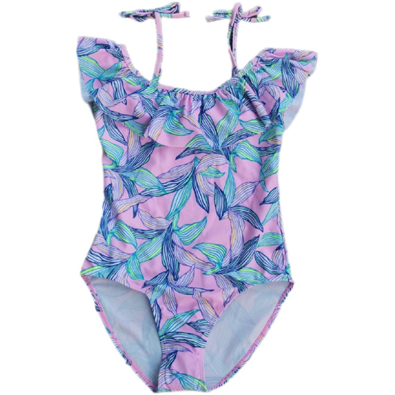 Export Foreign Trade Children Swimsuit Girl 7-16 CUHK Girl Girl Fashion Lotus Leaf Lace with student speed dry swimsuit