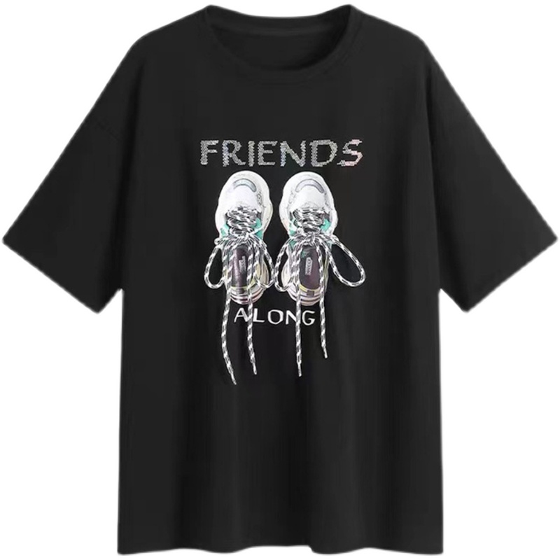 2022 Summer new 200 kilograms of fat mm large size for women with shoestring and hot and drilling pure cotton loose lengthened T-shirt female tide