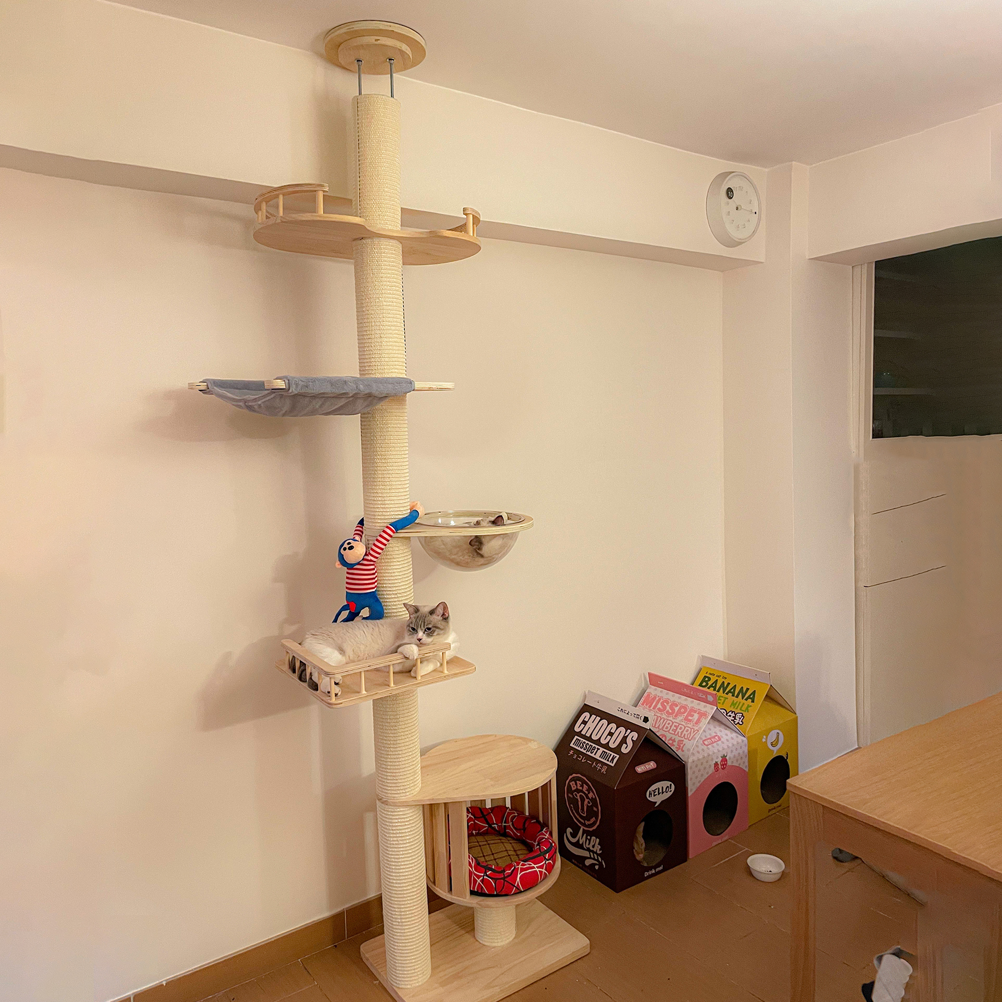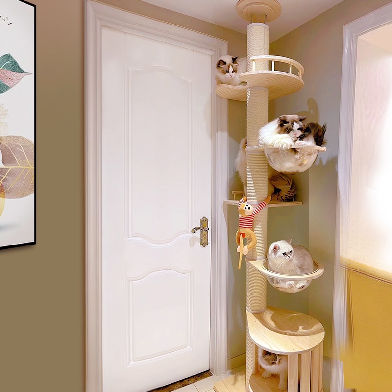 Solid wood Cowl climbing through the sky pillar Top of the sky Cat Nest Cat Trees large Not Occupy Cat House Cat Catch Cat Villa-Taobao