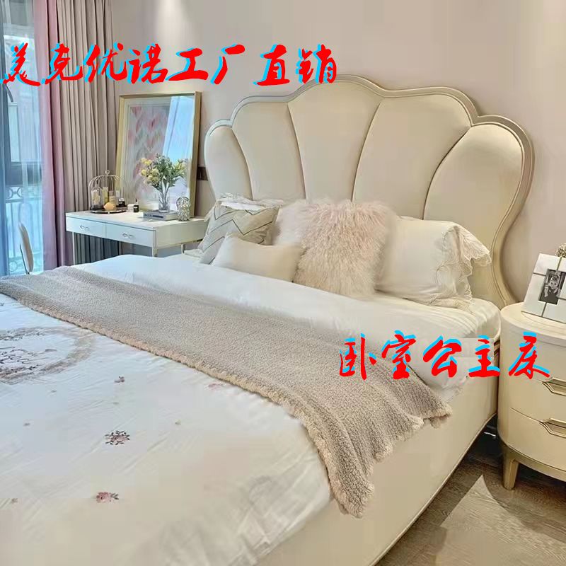 American light luxurious princess bed net red solid wood master bedroom wedding bed French style soft bag minimalist with double man bed with the same petal bed