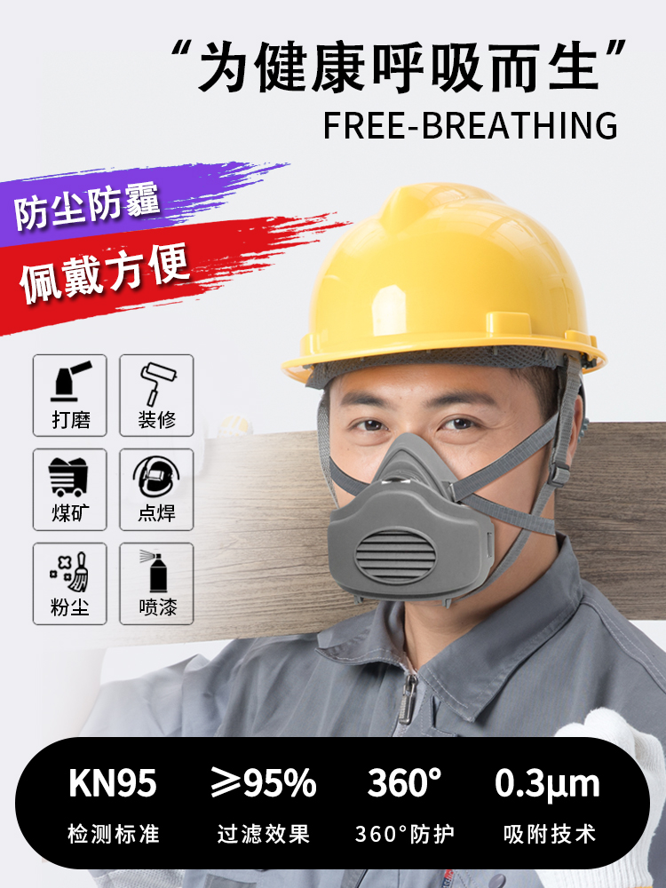 Anti-dust mask Lauprotect breathable easy to suck mouth nose cover Anti-industrial dust mouth Tan Polished Coal Mine Grey Powder Mask-Taobao