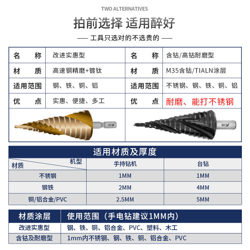 High hardness cobalt-containing pagoda drill multi-purpose tower drill stainless steel special m35 spiral tower type hole opening plastic