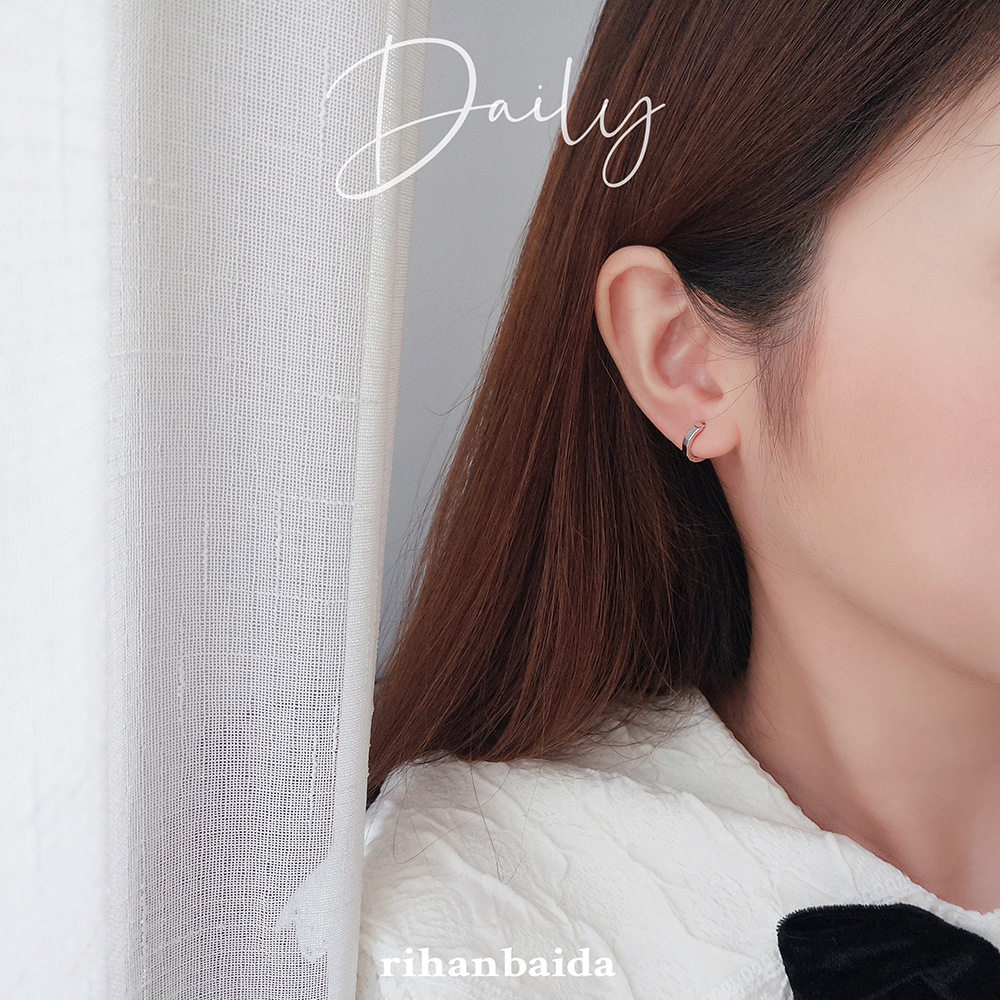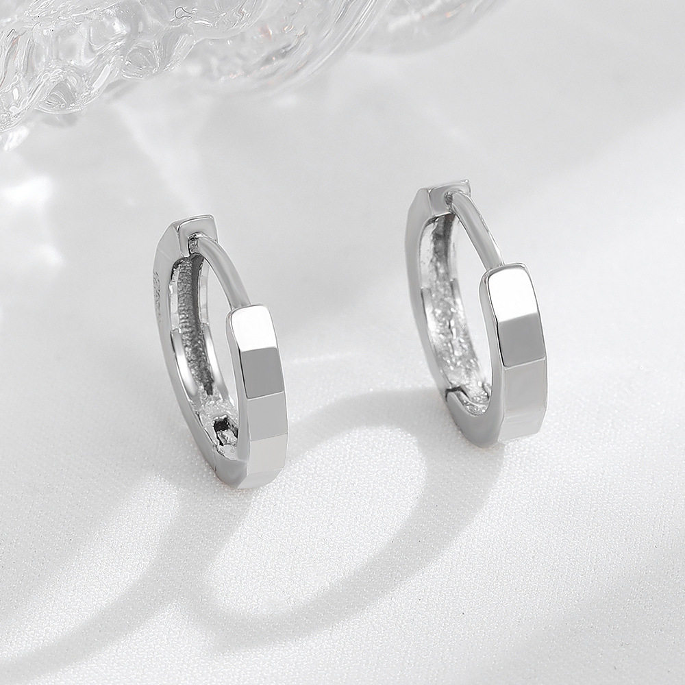 ins Wind minimal jewelry s925 pure silver cut face earbutton earbutton halo earbutton female