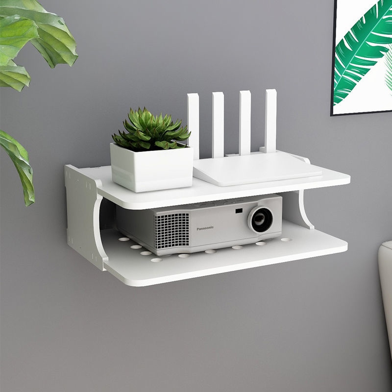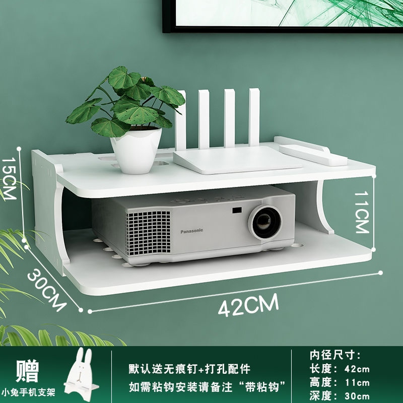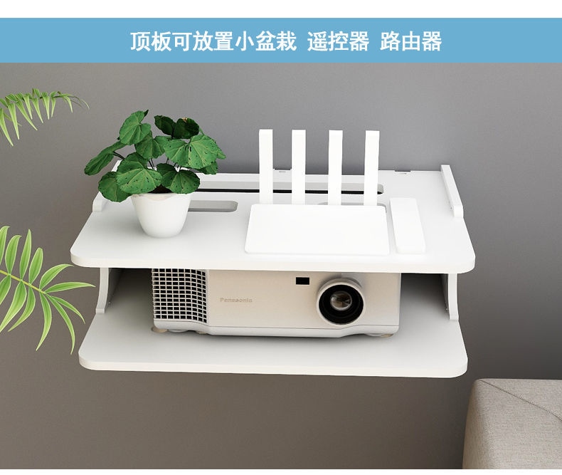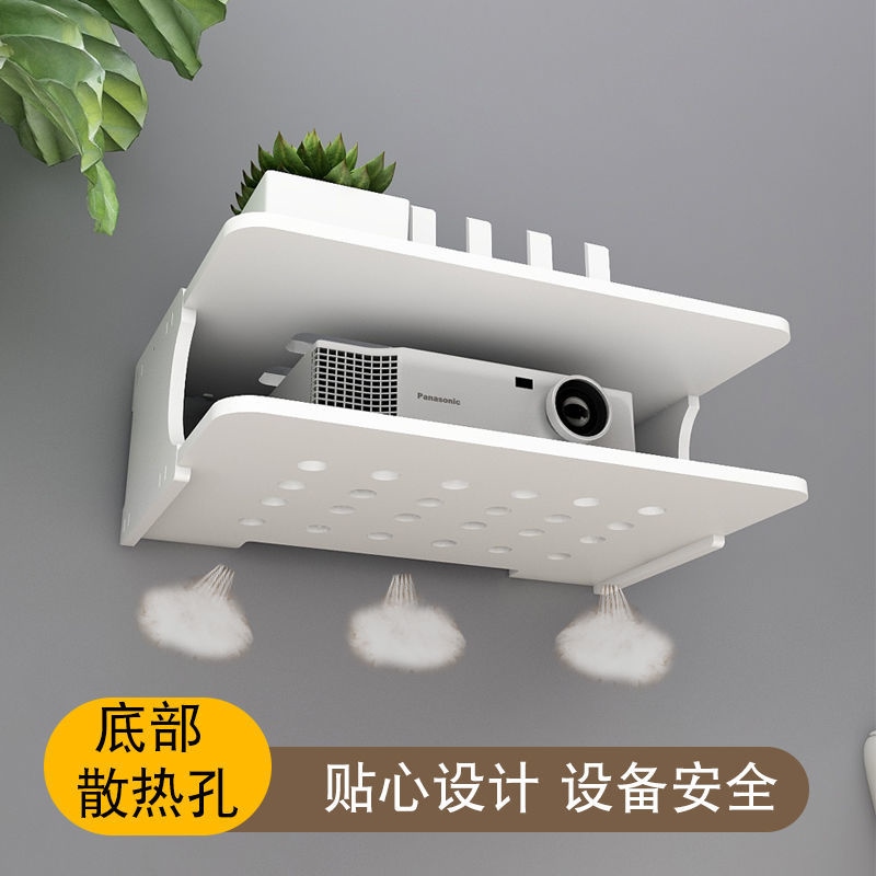 Projector holder free of punching wall-mounted bedside shelf to put table-tray hanger for domestic router hanging rack
