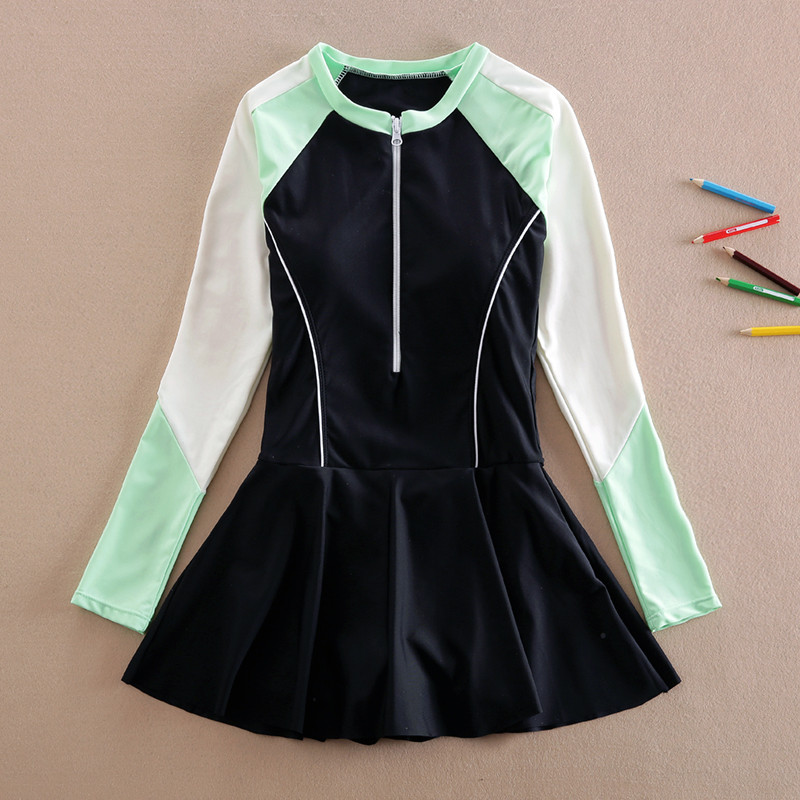 Girl's long-sleeved swimsuit with a large child student skirt swimsuit Cape Horn Children's Princess swimsuit 13-15 years old
