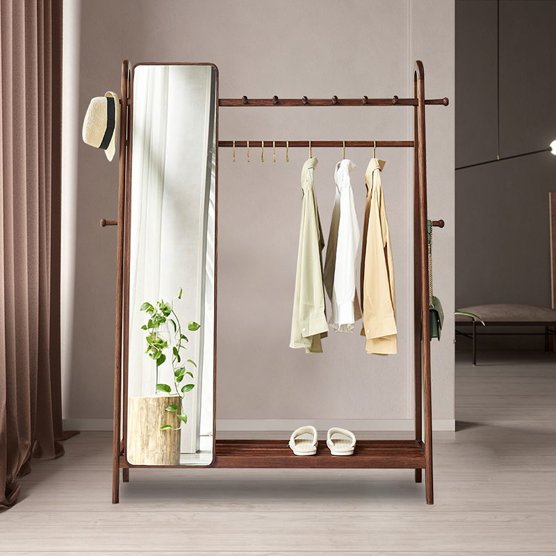 Solid wood hanger frame floor bedroom cloak frame with mirror in one body all-body rearror multifunctional household shelf