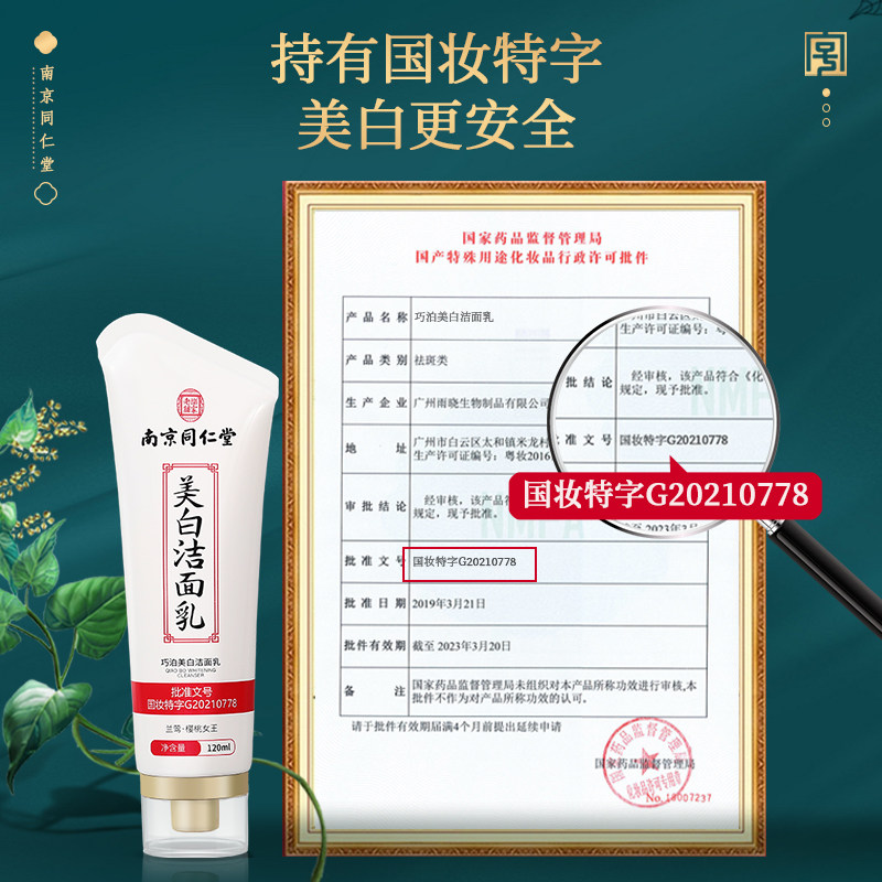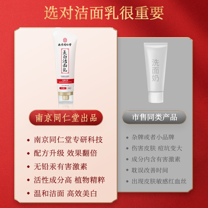 Nanjing Tongrentang Whitening Facial Cleanser Moisturizing Moisturizing Women's Oil Control Acne Acne Print Mite Remover Facial Cleanser for Men