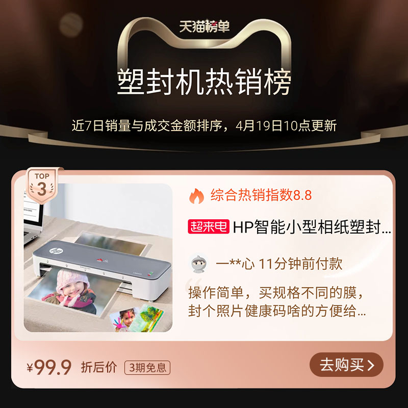 HP HP plastic sealing machine photo overmoulding machine plastic packaging film office intelligent home small photo over-plastic press film machine A3 A4 phase paper sealing film machine photo plastic packaging-Taobao