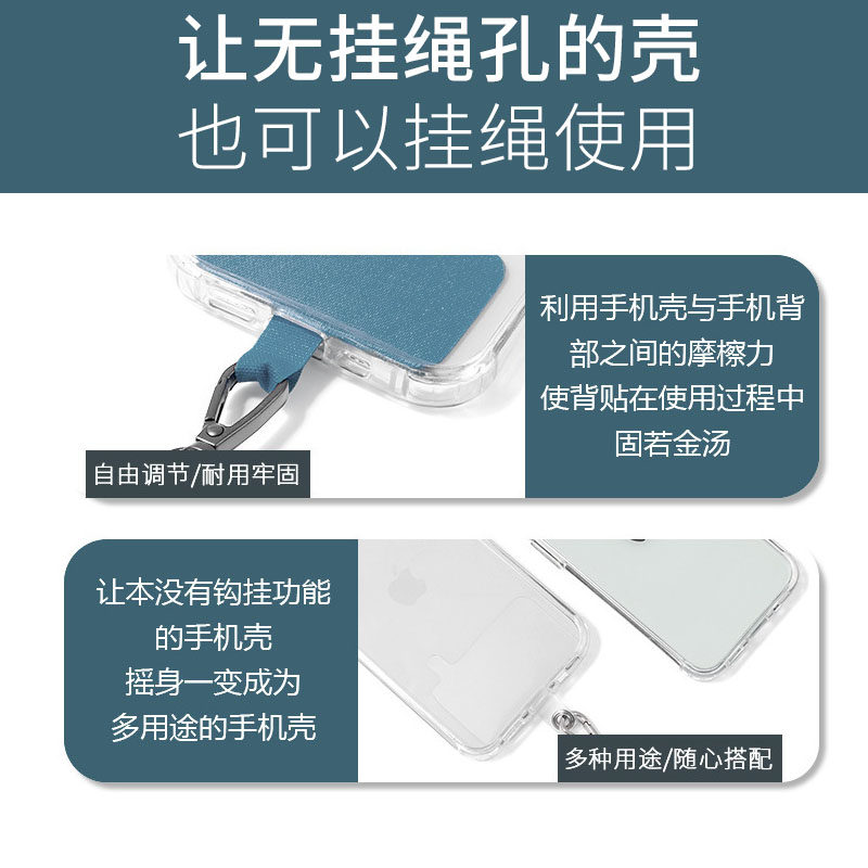 Mobile phone protective shell diagonal lanyard card anti-lost hanging neck rope retractable and adjustable color transparent fixed clip for men and women