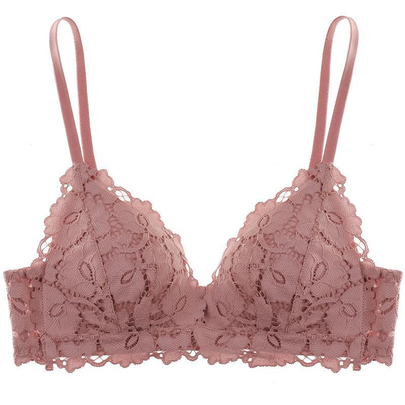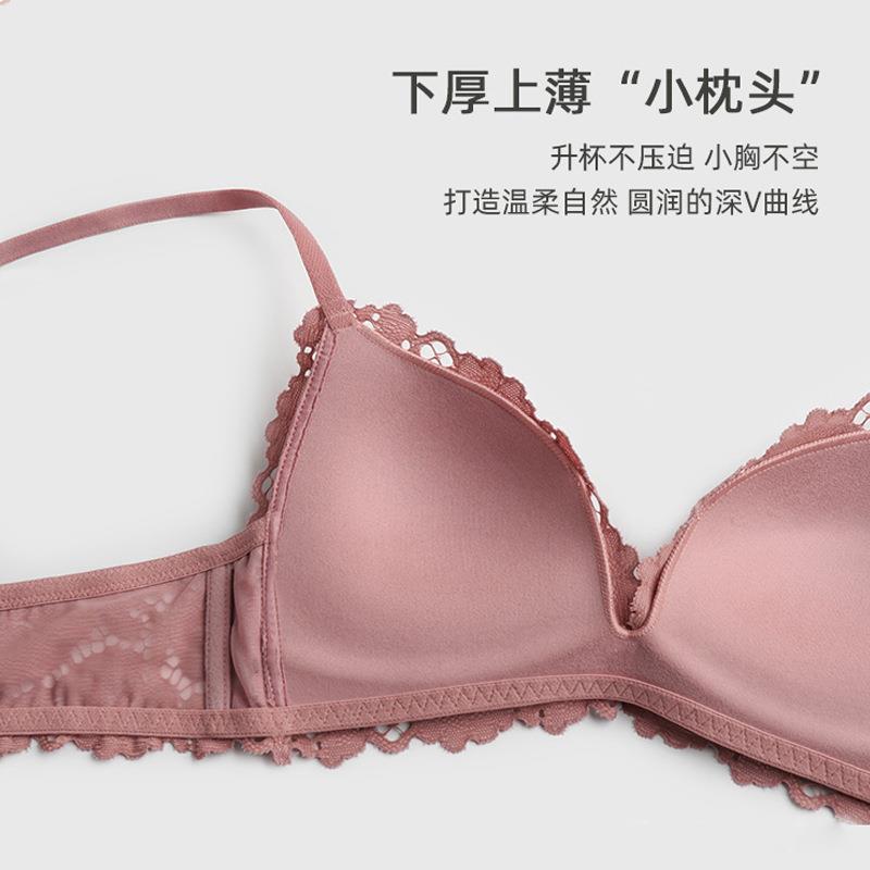 New Pint Style Underwear Women's Thin Cup Sexy Lace Triangle Cup Big Chest Display Little Steel Ring Bra Hood Bra