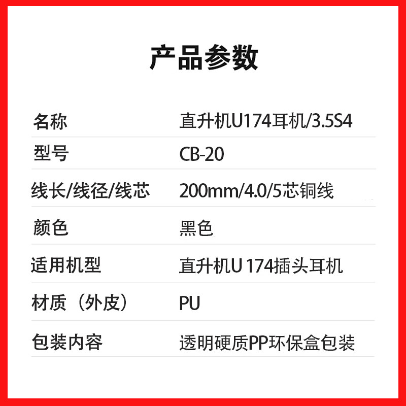 Robinson R44 helicopter U174 Air wearing noise-reducing headphones Single-pin plug turn Android 3 5 plug line