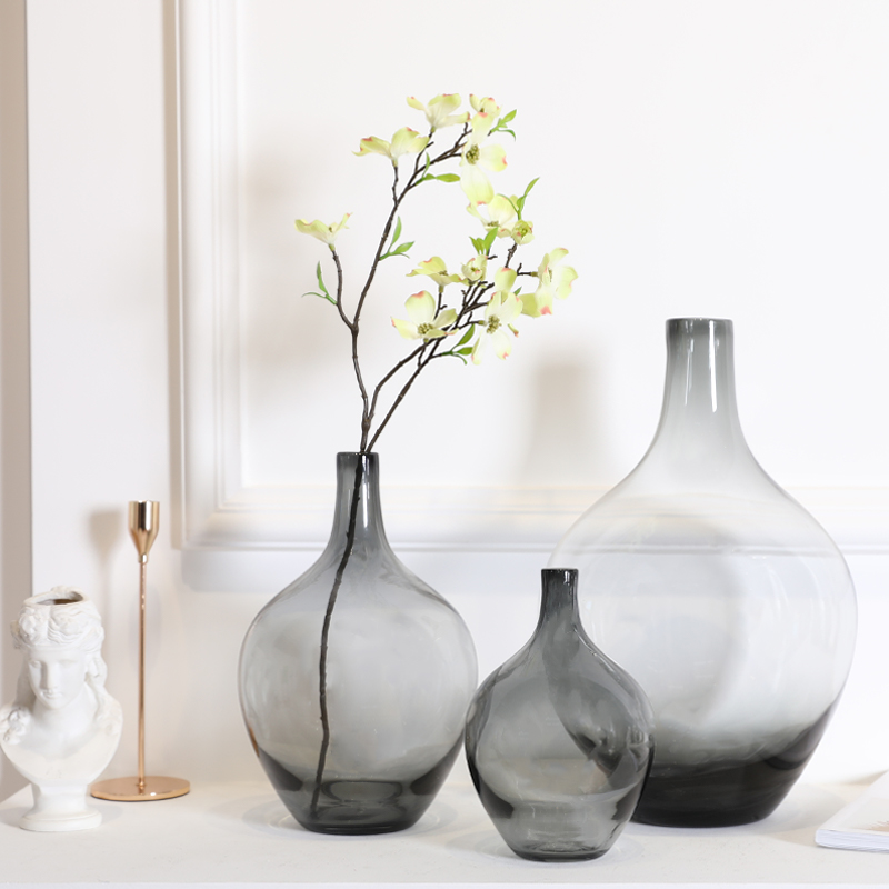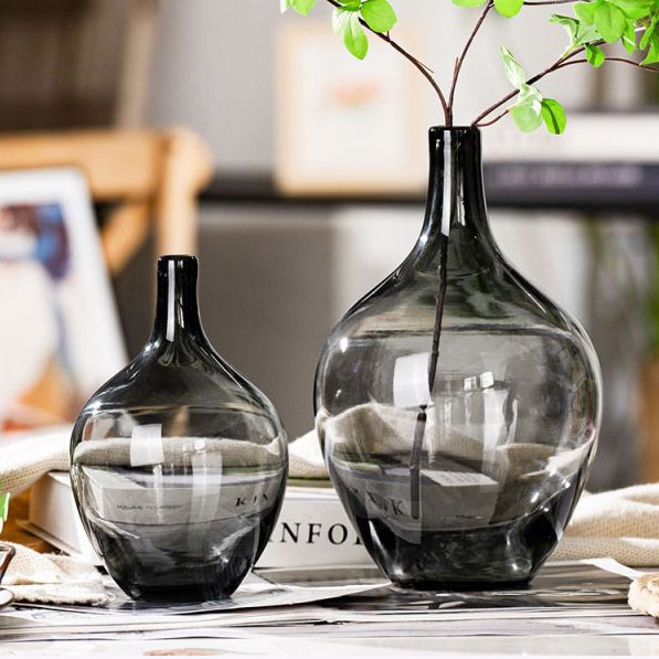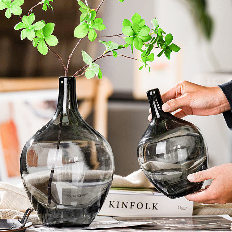 Modern light luxury hydroponic floor-to-ceiling glass big belly bottle horse drunk wood special vase decoration living room flower arrangement extra large