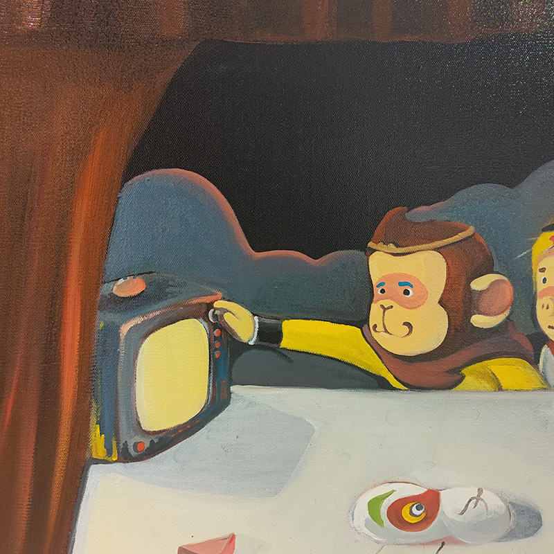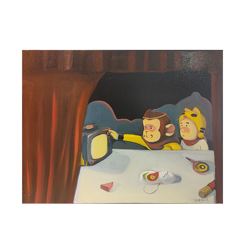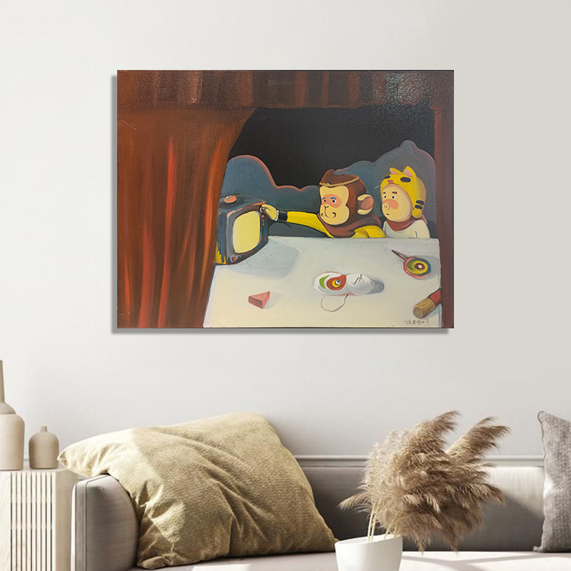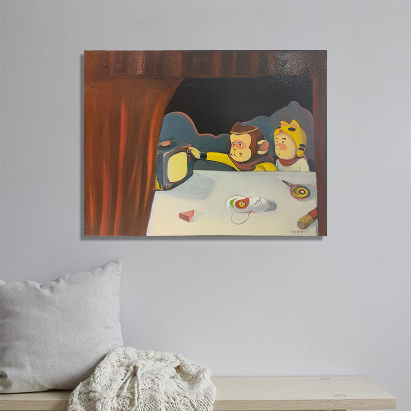 (Oil on canvas) Chen Jianzhou's "Watching TV" 80*60cm Mounting Living room decoration hanging painting