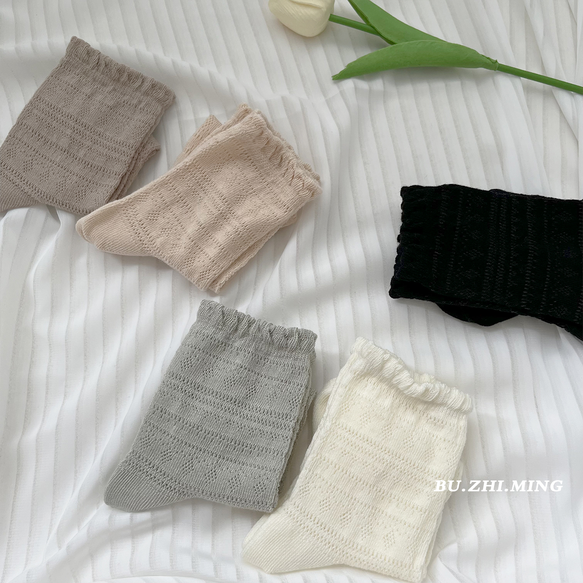 Milk white socks for women summer mid-tube thin mesh breathable loose mouth simple Japanese daily all-match spring and summer socks for women