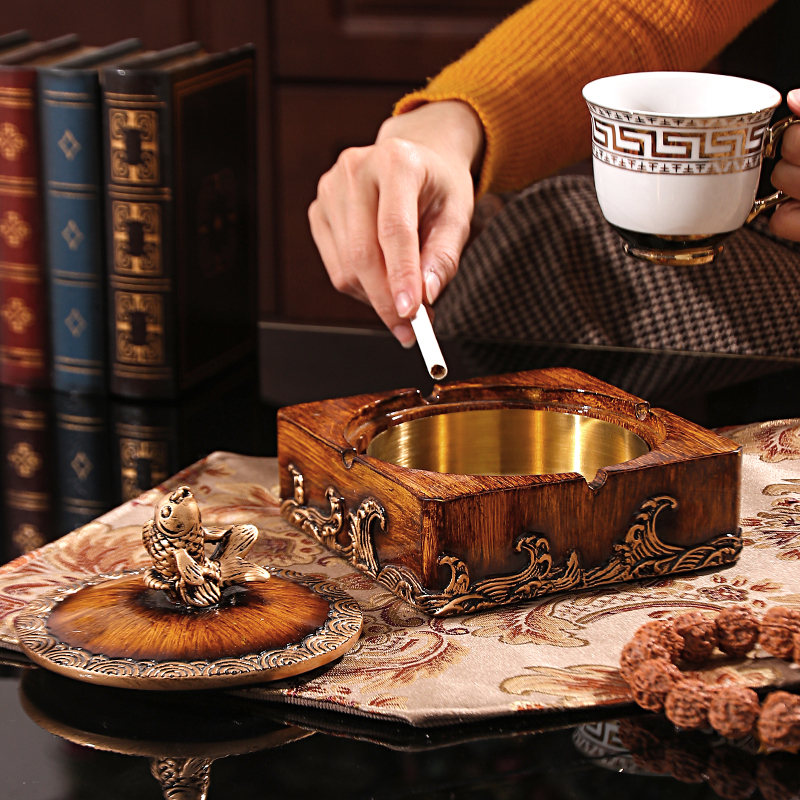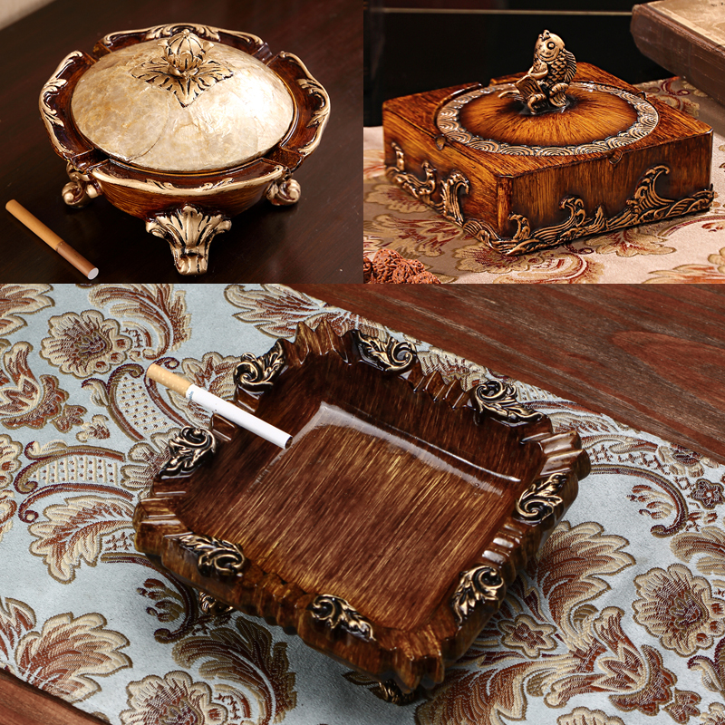 Chinese retro ashtray with lid living room trendy creative coffee table decoration office personality ashtray anti-fly ash - Taobao