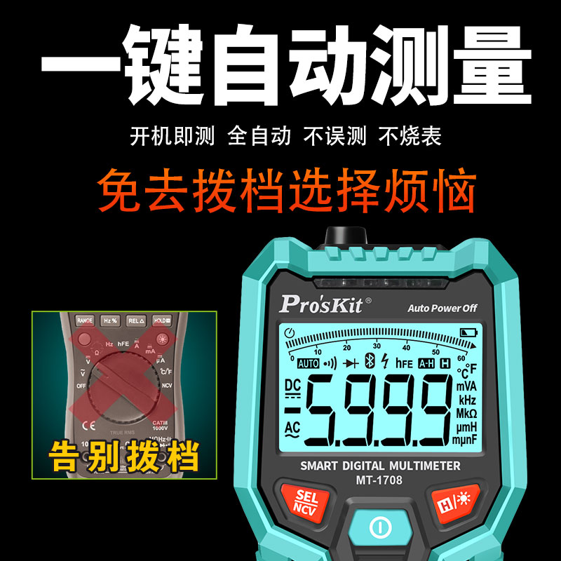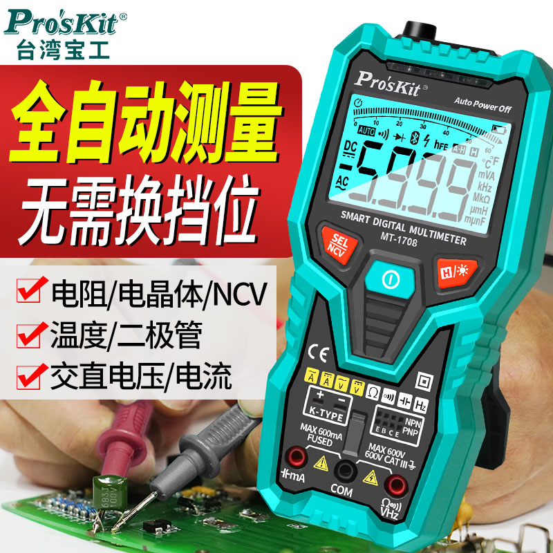 Taiwan Baogong multi-meter MT-1708 multi-function anti-burning automatic range digital multi-meter electrician multi-meter