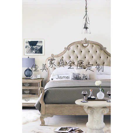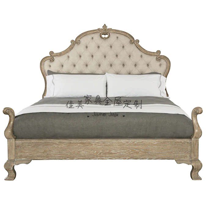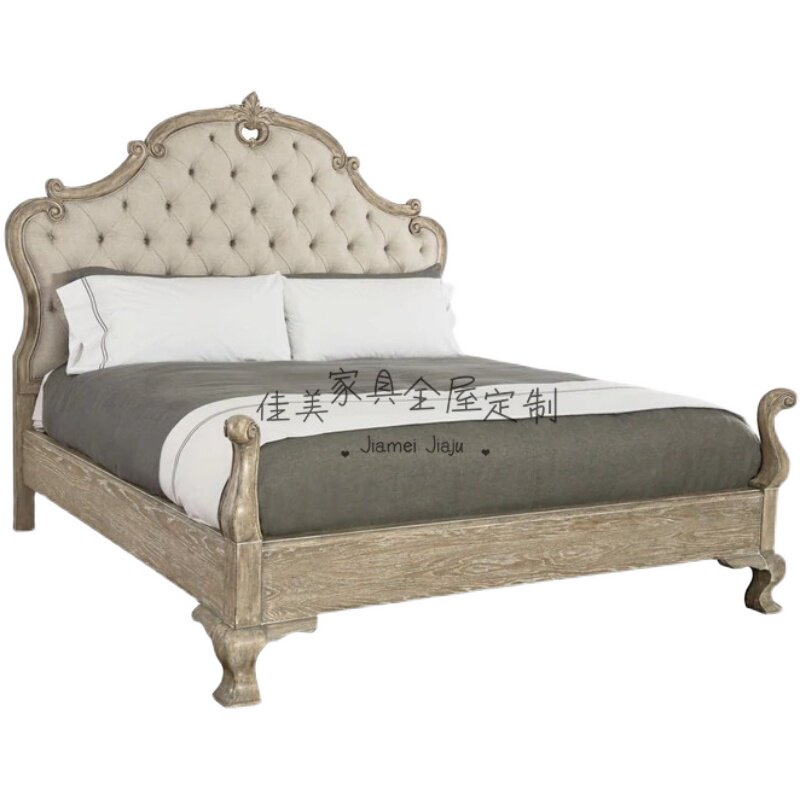 American countryside solid wood double bed French style retro original wood color weathering made of old small beauty carved wedding bed oak wood furniture