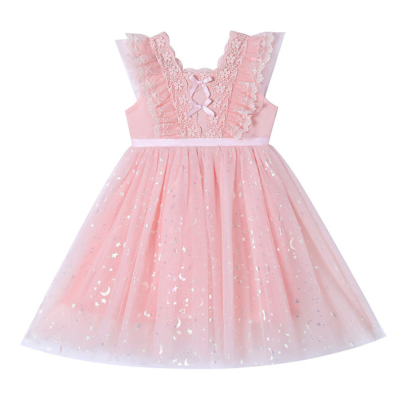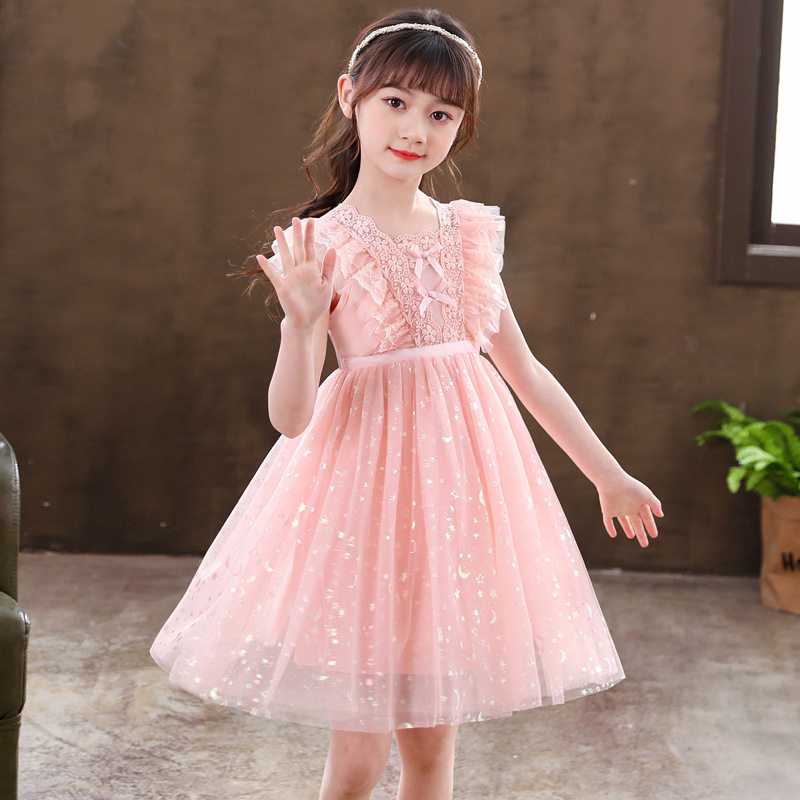 Girl Foreign Dress Summer Dress Foreign Pie Baby White Floral Dress Rehearsal for Fluffy Yarn Pink Lace Princess Dress