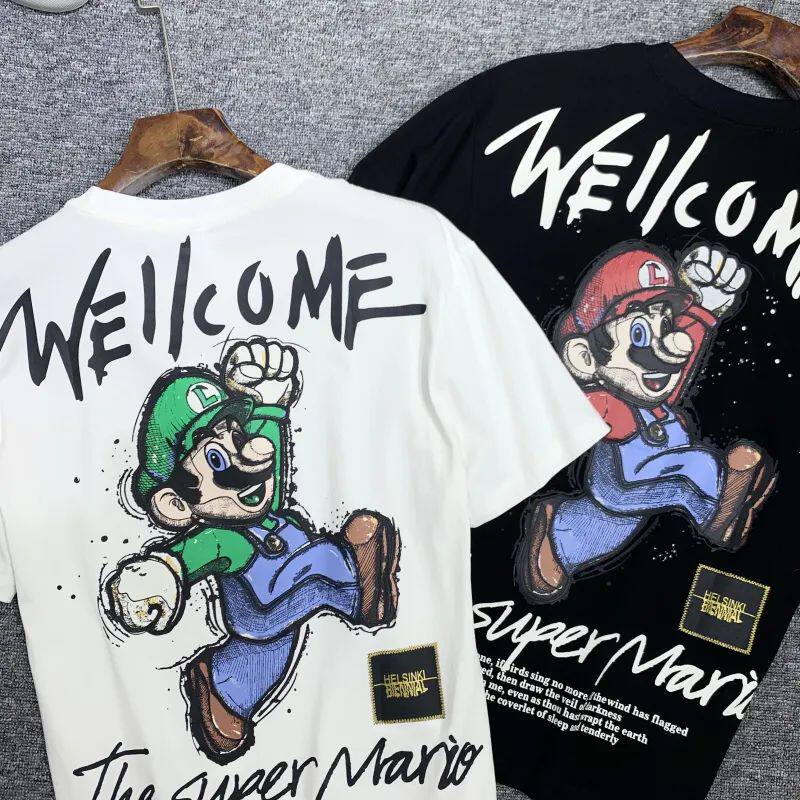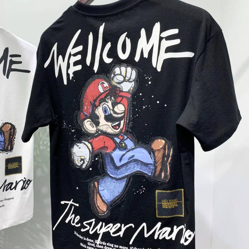 Tribute Classic Fun Embroidery Malio Graffiti Printed Summer Men's Fashion Round Collar Short Sleeve T-shirt Tide 9830