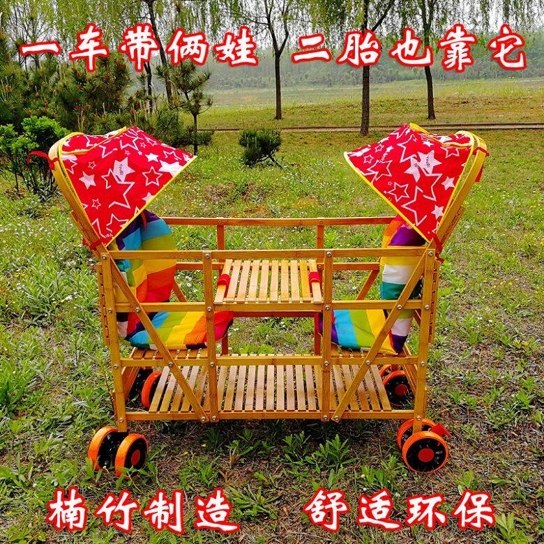 Twin baby stroller bamboo-knitted second-tire size Bao Children's bamboo carts can sit on a standing Nangzhu bike cart-Taobao