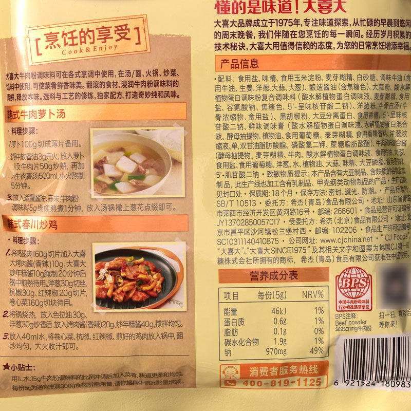 Daxi Da beef powder Korean Xijie pure flavor fresh seasoning stir-fry to make soup spicy beef soup 1kg commercial
