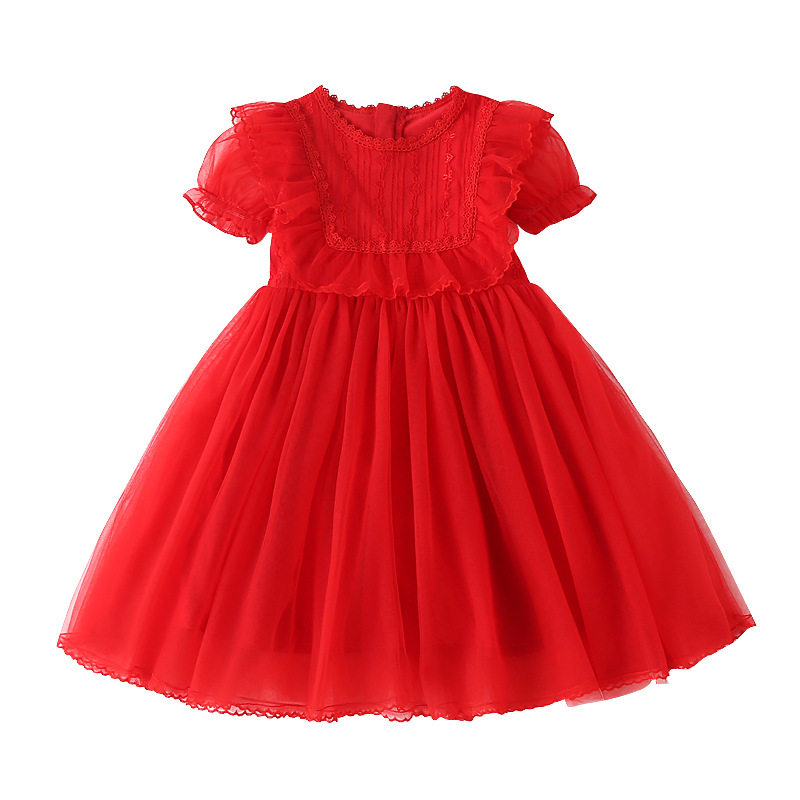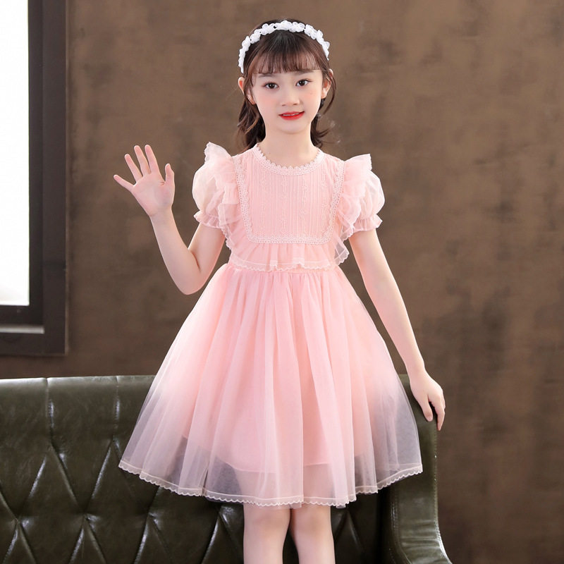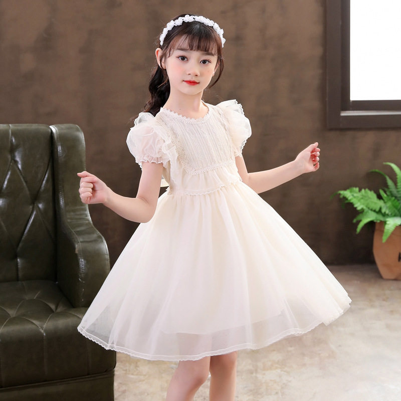 Girls puff sleeve princess dress summer foreign style super fairy children white fluffy yarn dress dress flower girl skirt